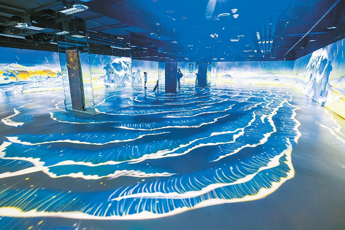 在瞭仓数字藏品博物馆,沉浸式数字艺术展带观众感受传统文化与现代科技融合的魅力。本报记者 邓伟摄